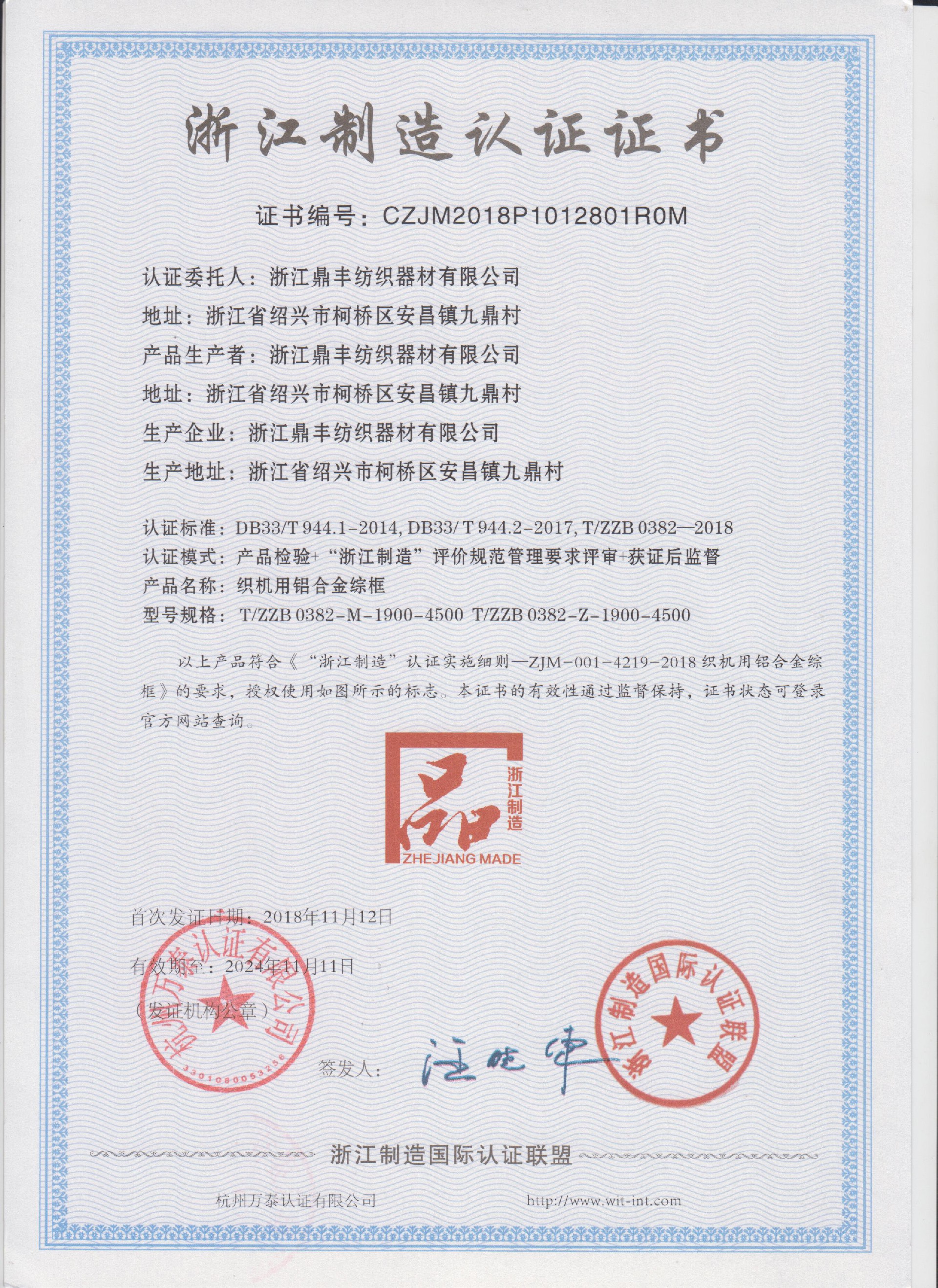 公司現(xiàn)有固定資產(chǎn)6000余萬(wàn)元,員工300余人,現(xiàn)具有年產(chǎn)噴氣異型筘12萬(wàn)米,劍桿筘32萬(wàn)米,噴水筘5萬(wàn)米,綜框20萬(wàn)片,鋼片綜2億片,停經(jīng)片1.5億片, 織軸1.2萬(wàn)套的生產(chǎn)能力。公司“越泉”商標(biāo)被評(píng)為“中國(guó)馳名商標(biāo)”。公司通過(guò)ISO9001 :2015國(guó)際質(zhì)量體系認(rèn)證,ISO14001:2015國(guó)際環(huán)境管理體系認(rèn)證,ISO45001:2018國(guó)際職業(yè)健康安全管理體系認(rèn)證,噴氣織機(jī)用鋼筘和織機(jī)用鋁合金綜框獲得“浙江制造”品牌認(rèn)證,公司擁有自營(yíng)進(jìn)出口權(quán),產(chǎn)品暢銷(xiāo)全國(guó)并遠(yuǎn)銷(xiāo)印度、巴基斯坦、土耳其、埃及、哥倫比亞、意大利等國(guó)家和地區(qū)。